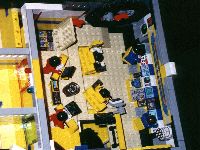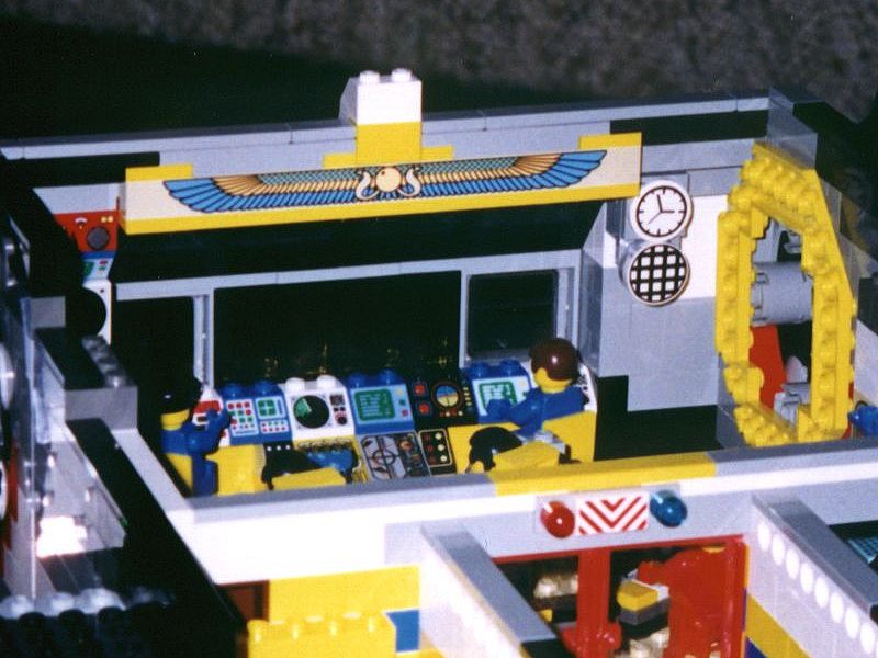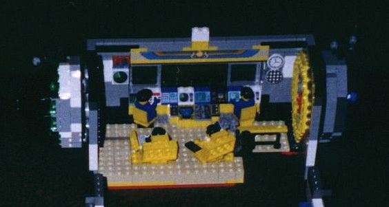 This module is the first half of the main bridge. There are 2 captains chairs and two naviagtors in this module. There are also two man controlled quad cannon lazer turrets on either side of the bridge. |